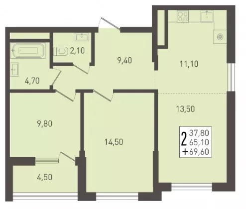 Продается 2-х комн. новостройка, 69.6 кв.м., 4/8 эт