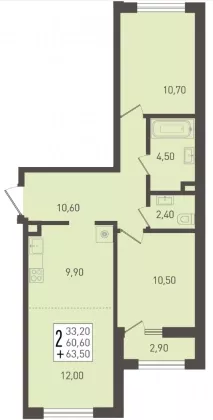 Продается 2-х комн. новостройка, 63.5 кв.м., 1/8 эт