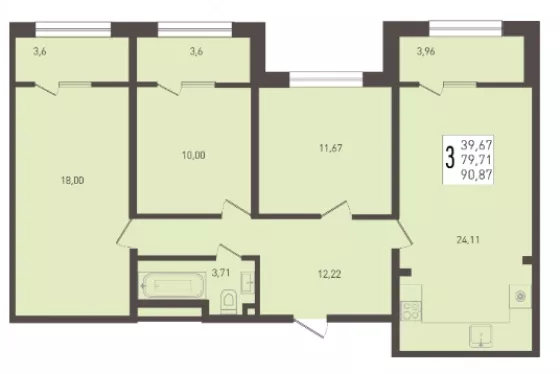 Продается 3-х комн. новостройка, 90.87 кв.м., 1/8 эт