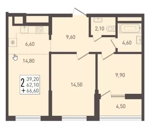 Продается 2-х комн. новостройка, 66.6 кв.м., 6/8 эт
