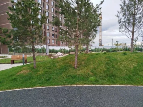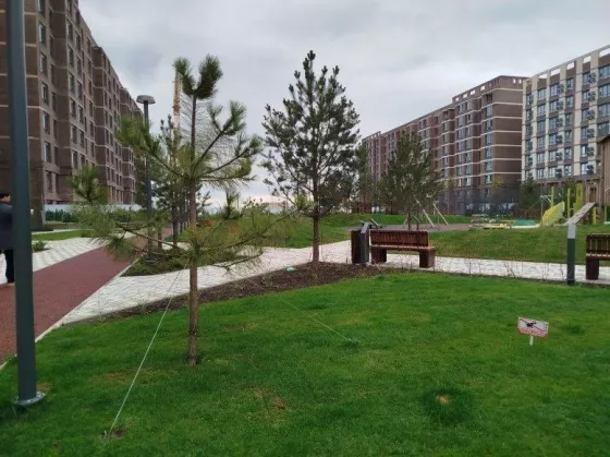 Панорамные окна, зеленные насаждения, парк из елей, цветники, ландшафтный дизайн двора, площадь парковых и прогулочных зон 2,2 гектара. В центре двора стильный фонтан, здесь же удобная зона с лежаками.