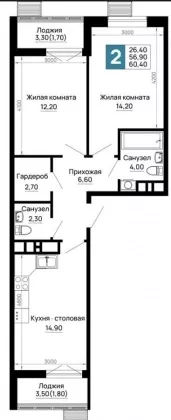 Продается 2-х комн. новостройка, 60.4 кв.м., 4/16 эт