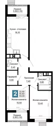 Продается 2-х комн. новостройка, 59 кв.м., 7/16 эт