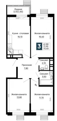 | Площадь, кв.м. | 73.4 |
