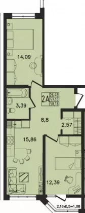 Продается 2-х комн. новостройка, 58.18 кв.м., 3/16 эт