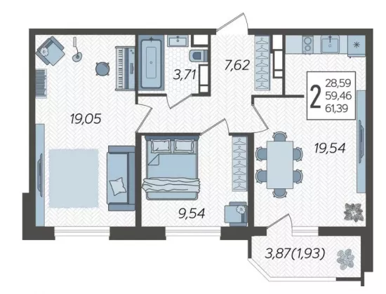 Площадь, кв.м.61.39