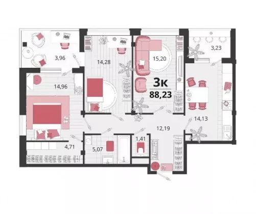 Продается 3-х комн. новостройка, 88.2 кв.м., 24/24 эт