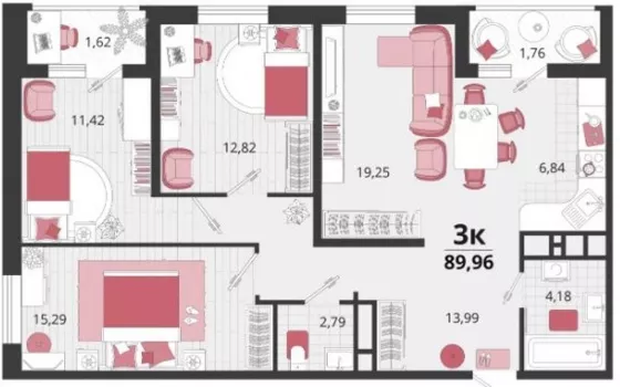 Продается 3-х комн. новостройка, 89.96 кв.м., 11/16 эт