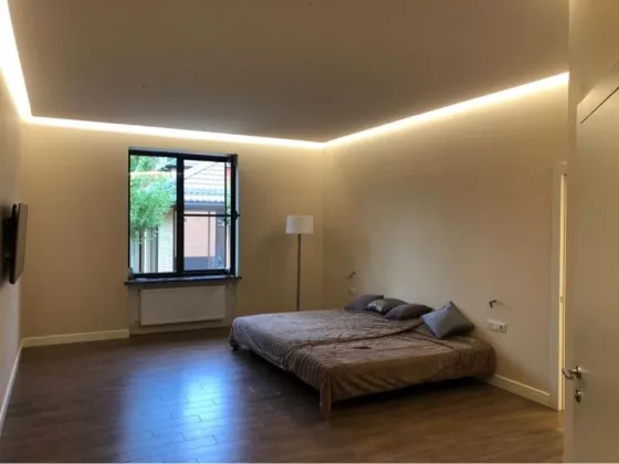 Дом с гаражом, сауной,ремонтом и мебелью.В доме много пространства,Из прихожей вы попадаете в огромный хол-гостинную, имеющую выход в зону отдыха типа-терраса.Имеется детская комната,гостевая комната , родительская спальня с гардеробной и своей ванной комнатой.Внутренняя отделка дома выполнена по проекту дизайнера,с использованием дорогостоящих качественных материалов. Во дворе ландшафтный дизайн, застекленная беседка. Все коммуникации центральные, Подъездные пути-асфальт.