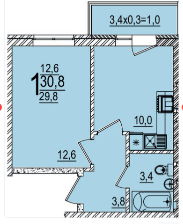 | Площадь, кв.м. | 30.8 |