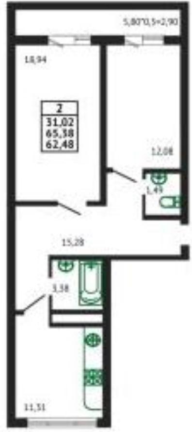 В продаже супер 2 комнатная квартира «бабочка», ленточная лоджия 5,8 квадратных метров остеклена.