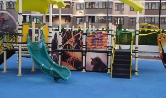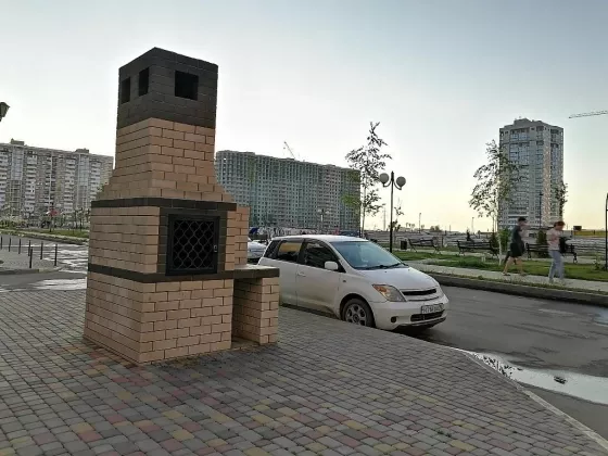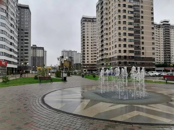 Рядом с домом строится школа и три детский садика, два торговых центра. Для прогулок зеленая аллея с поющим фонтаном, в центре жилищного комплекса красивый храм.
