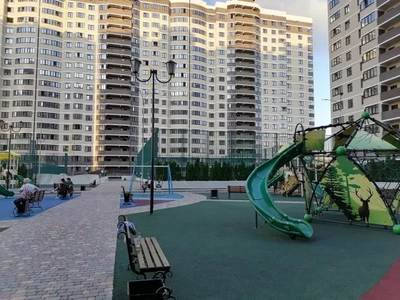 Квартира с предчистовой отделкой, большая лоджия и балкон. С квартиры прекрасный вид на стилобат, там спортивные и детские площадки, футбольное и волейбольное поле, места для отдыха взрослых, беседки, столики и скамейки, внизу стилобата парковка, во дворе место под барбекю.