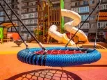 Двор с современными детскими и спортивными площадками, с фруктовыми деревьями, зелёными зонами. Во дворе школа, детский сад, различные магазины, объекты бытового обслуживания, много уличных тренажеров для детей и взрослых. На территории спортивный комплекс, беговые дорожки , велосипедная дорожка, лавочки для отдыха с зелёными газонами.