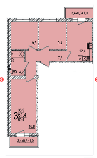 Продается 3-х комн. квартира, 61.4 кв.м., 3/5 эт