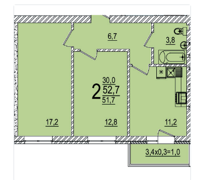 Продается 2-х комн. квартира, 52.7 кв.м., 4/5 эт