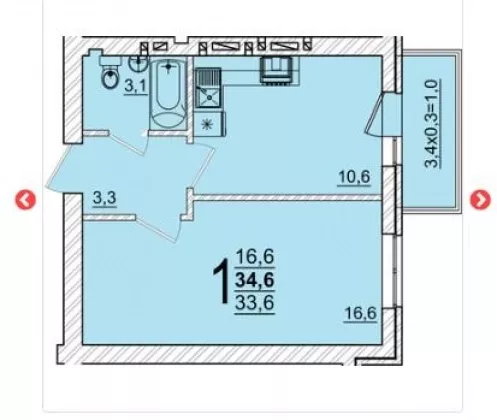 Продается однокомнатная квартира, 33.6 кв.м., 3/5 эт