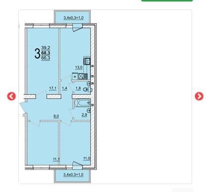 Продается 3-х комн. квартира, 66.3 кв.м., 2/5 эт