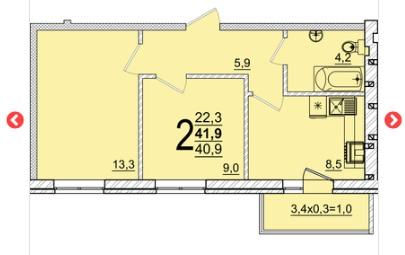 Продается 2-х комн. квартира, 40.9 кв.м., 2/5 эт