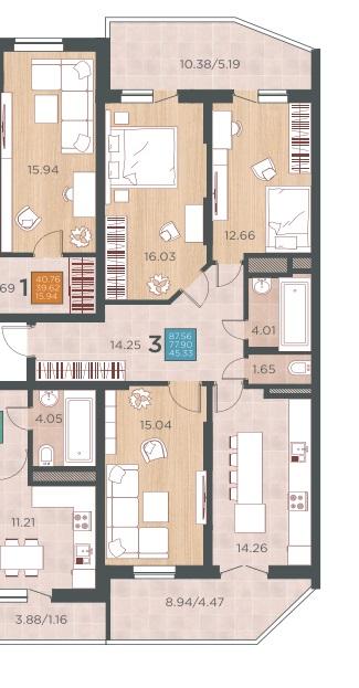 | Комнат в квартире | 3 |