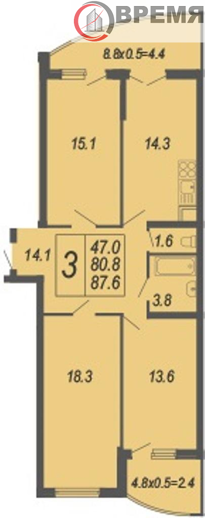 | Комнат в квартире | 3 |