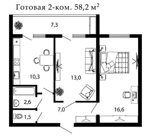 | Площадь, кв.м. | 58.2 |