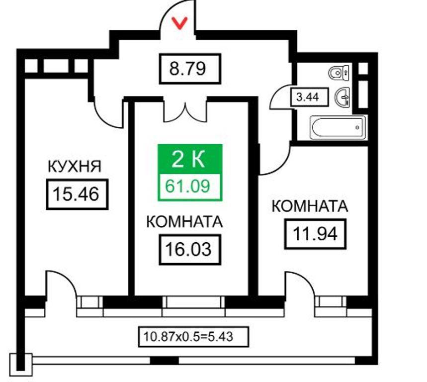 Двухкомнатная квартира, дом сдан!!! В квартире большая ленточная лоджия выход на неё есть со всех комнат.