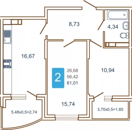 Продается 2-х комн. квартира, 64.65 кв.м., 4/16 эт