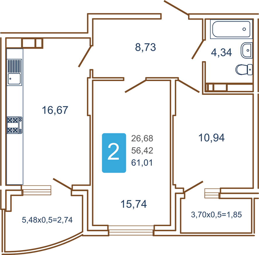 | Площадь кухни, кв.м. | 16.67 |