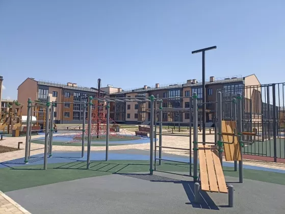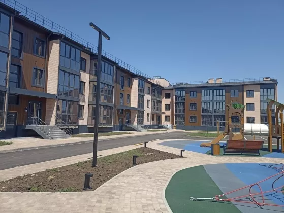 Новый проект в европейском стиле. Малоэтажная постройка, широкие и зеленые дворы, большое расстояние между домами, детские и спортивные площадки.
