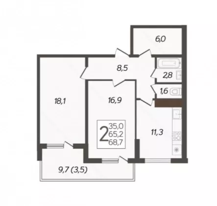 Продается 2-х комн. квартира, 68.7 кв.м., 11/24 эт