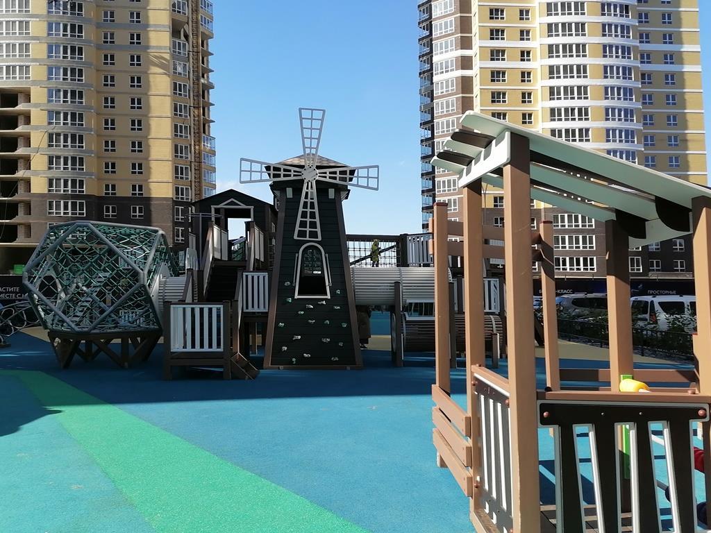 Въезд на охраняемую территория через шлагбаум. Во дворе ландшафтный дизайн с детскими и спортивными площадками, есть подземный паркинг.