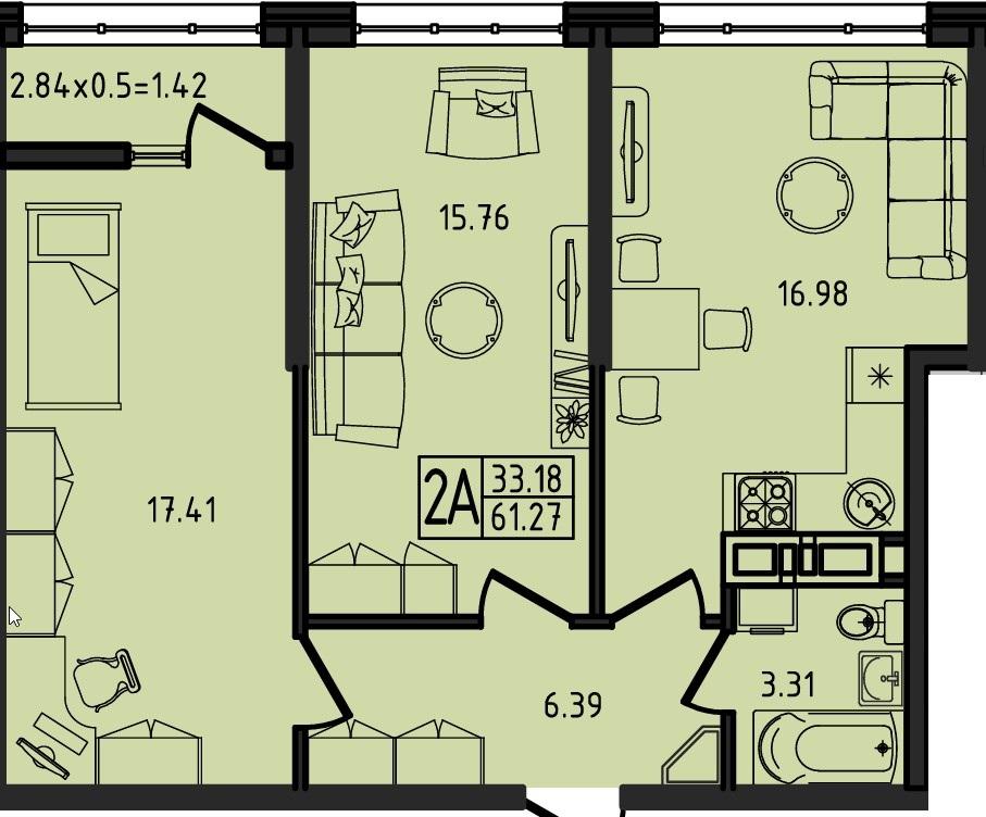 Продается 2-х комн. квартира, 61.27 кв.м., 5/9 эт