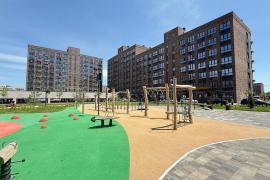 Уютные беседки, современные детские и спортивные площадки на стилобате, автоматические поливы газонов, аллеи для прогулок, широкие дворы.