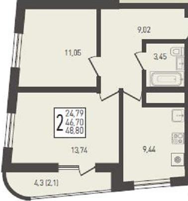 Продается 2-х комн. квартира, 49 кв.м., 5/24 эт