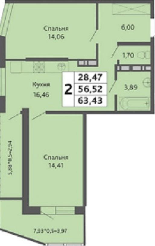 | Площадь, кв.м. | 63.43 |