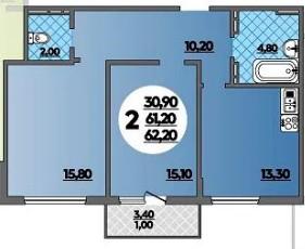 Продается 2-х комн. квартира, 62.2 кв.м., 4/18 эт