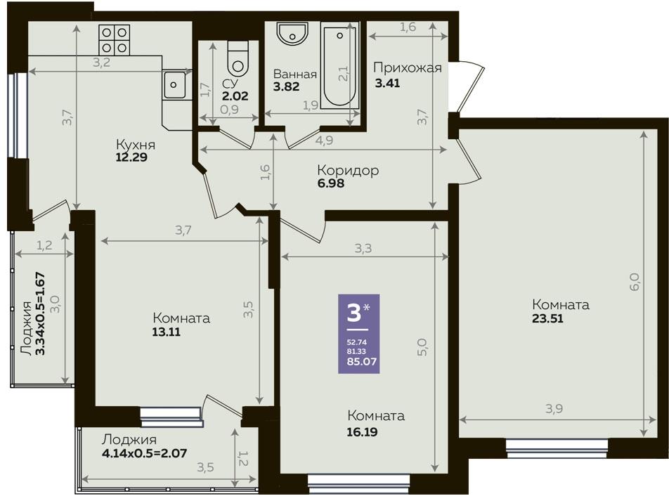Продается 3-х комн. квартира, 85.07 кв.м., 2/24 эт