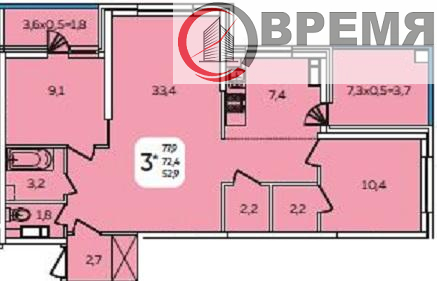 Продается 3-х комн. квартира, 78 кв.м., 4/12 эт