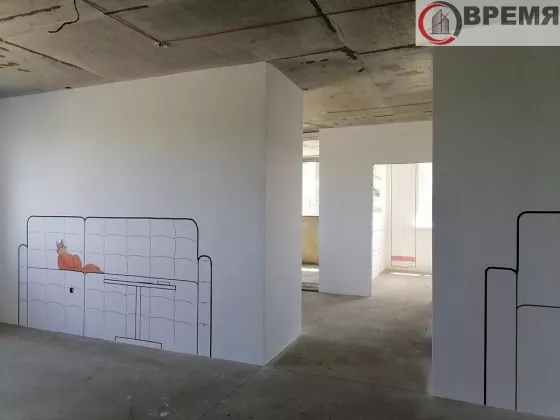 В квартире большая кухня гостиная с выходом на большую лоджию ( на которой можно организовать кабинет , поставить тренажеры, сделать игровую комнату для детей или просто зону отдыха, так как площадь этого помещения более 7 м.кв. ), жилая комната с гардеробной внутри, есть кладовка, раздельный санузел, а также гардеробная в при входе в квартиру.