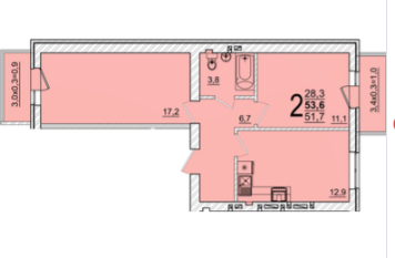 Продается 2-х комн. квартира, 53.6 кв.м., 4/5 эт