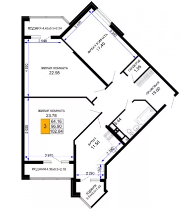 Продается 3-х комн. квартира, 102.84 кв.м., 12/16 эт