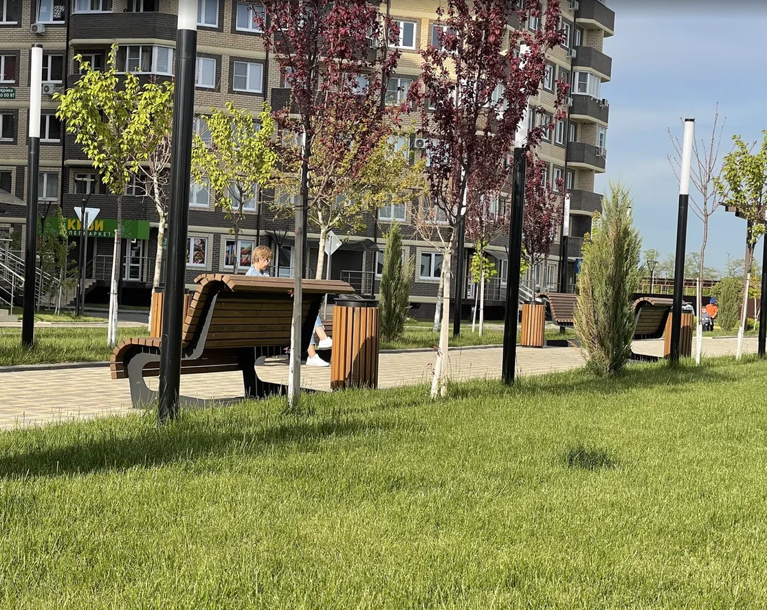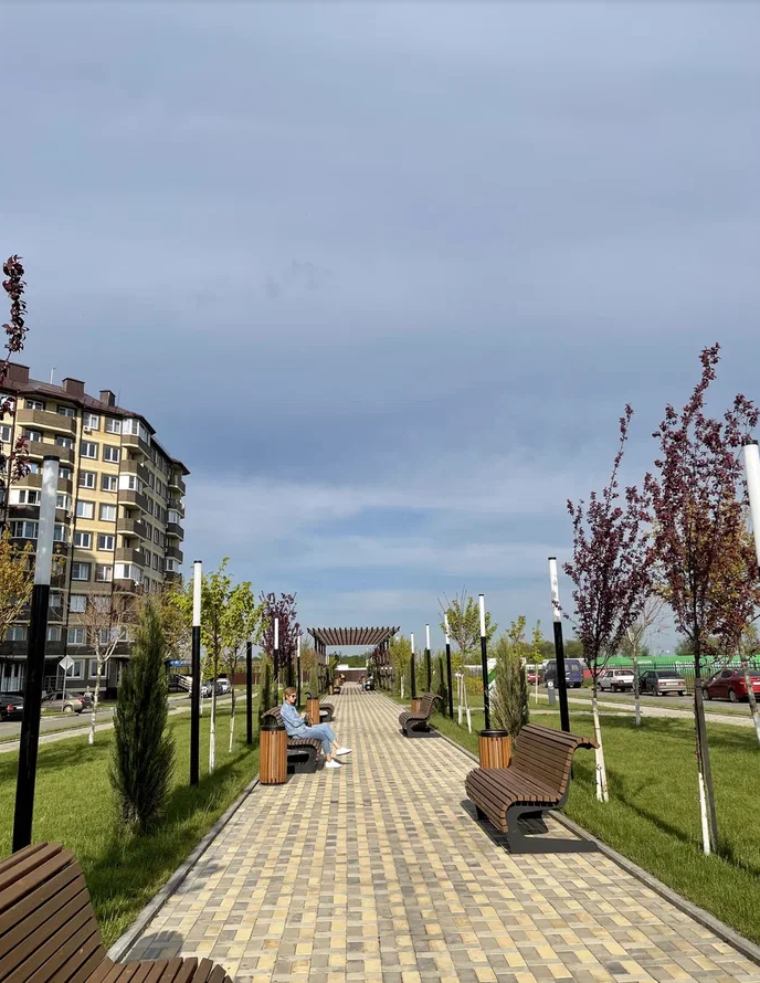 Закрытый жилой комплекс, с детскими и спортивными площадками, на территории фруктовый сад, аллеи для прогулок, на пером этаже коммерческие помещения с форматом "магазины у дома".