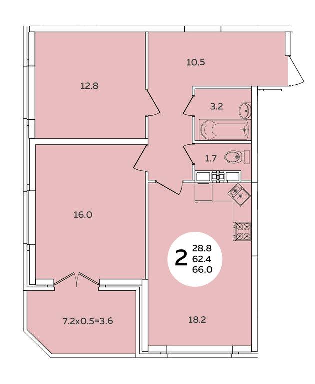 Продается 2-х комн. квартира, 66 кв.м., 10/24 эт