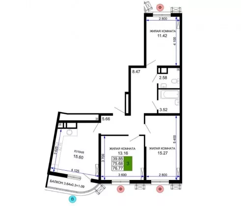Продается 3-х комн. квартира, 76.77 кв.м., 13/24 эт