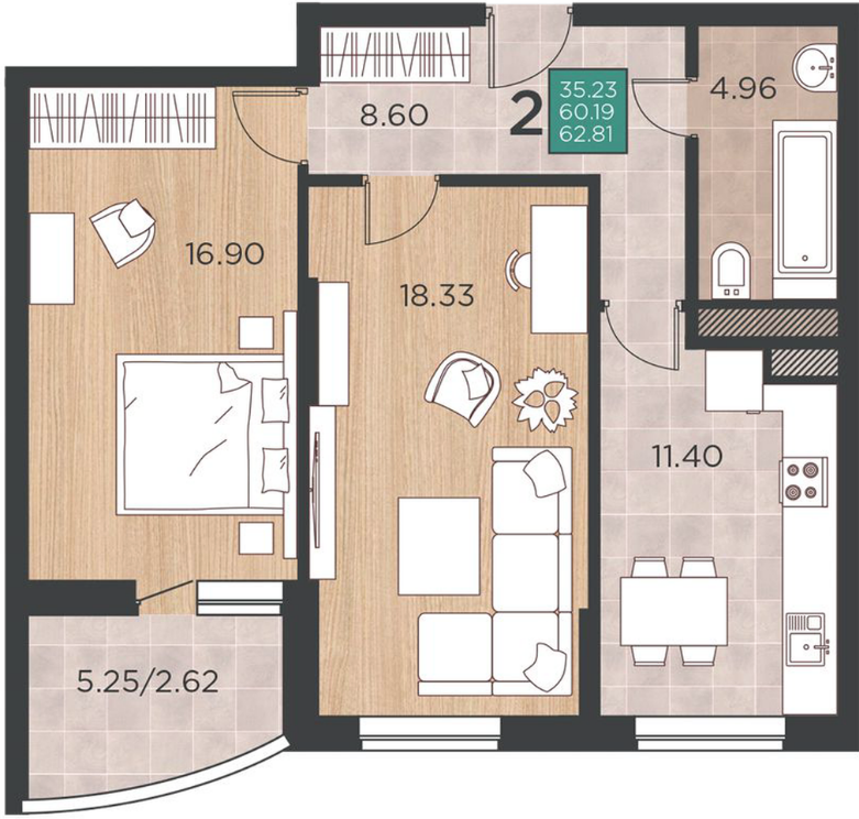 Продается 2-х комн. квартира, 62.81 кв.м., 14/17 эт