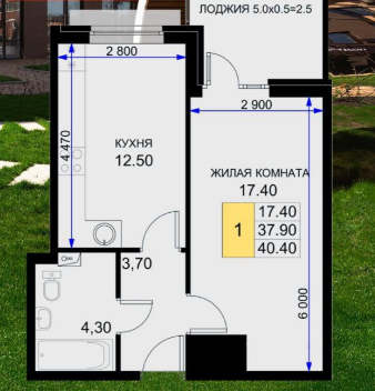 Продается однокомнатная квартира, 40.4 кв.м., 4/7 эт