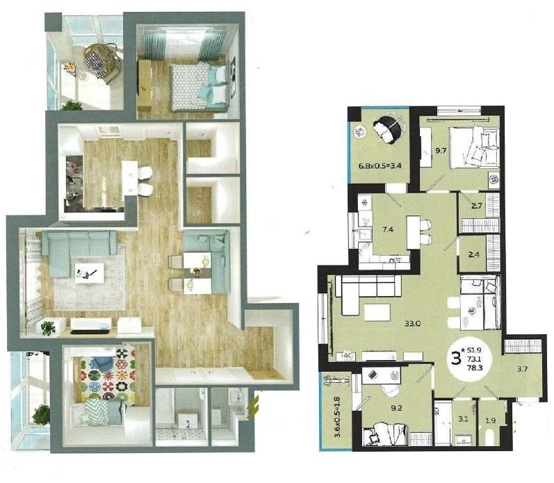 Трехкомнатная квартира для большой семьи. Современная планировка, есть возможность перепланировать в четырехкомнатную квартиру. Потрясающий жилой комплекс, дизайнерские входные группы, облагорожена придомовая территория. Рядом с домом новая школа в ген. плане три корпуса детского сада, строится два больших торговых центра. От дома проходит зеленая аллея которая ведет к школе и к остановке общественного транспорта, на ней расположен поющий фонтан и красивый храм, отличное место для прогулок. В самом комплексе расположен стилобат на верху которого огромная детская площадка, футбольное и баскетбольное поле, беседки для отдыха и зона барбекю. Территория закрытая и доступ имеют только жильцы дома . Запороцкова Анна