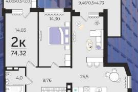 Продается 2-х комн. квартира, 74.32 кв.м., 12/19 эт