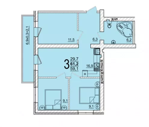 Продается 3-х комн. квартира, 61.2 кв.м., 4/5 эт